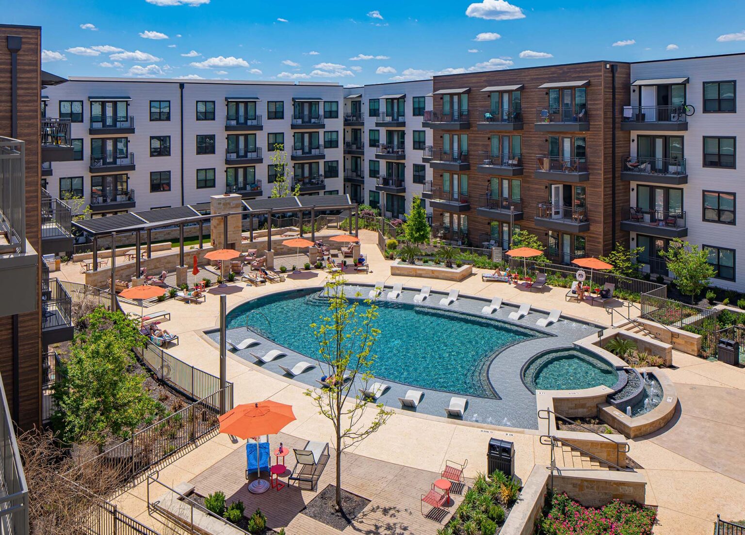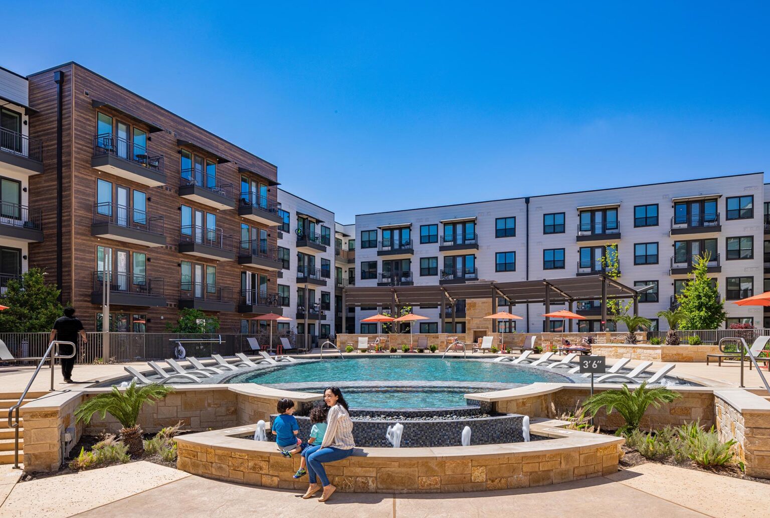 The design addresses the need for a tranquil living environment within a vibrant urban setting. By integrating extensive amenity spaces and preserving the natural landscape, Alexan Garza Ranch provides a harmonious balance between urban living and nature. The thoughtful layout and design elements create an inviting atmosphere, offering residents a serene retreat with convenient access to both outdoor and city amenities.