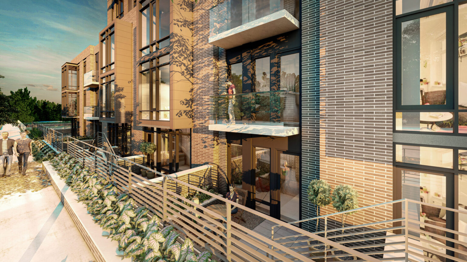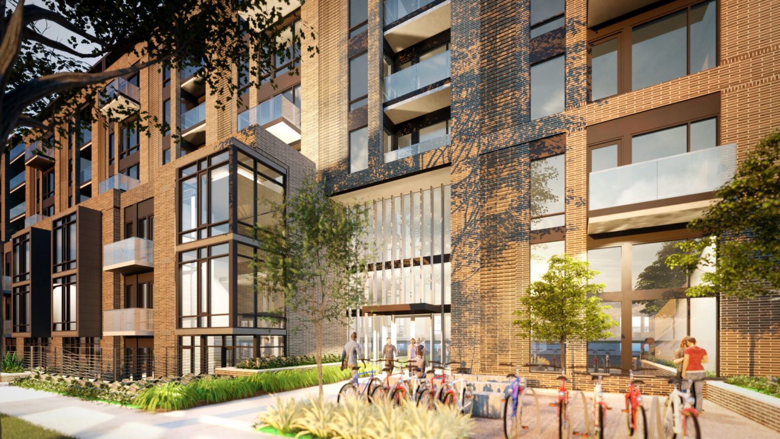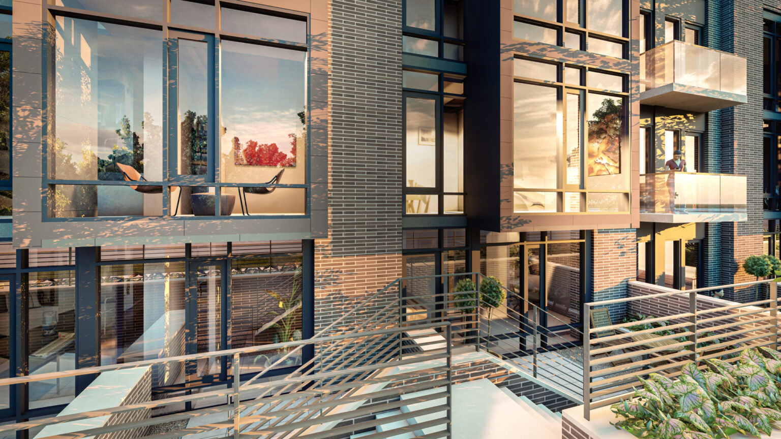 The first three stories of the predominantly brick building feature apartment units reminiscent of walk-up brownstones commonly found in Chicago and New York City. The design includes a generous setback for the upper floors facing Richmond, honoring the lower scale of the surrounding existing buildings.