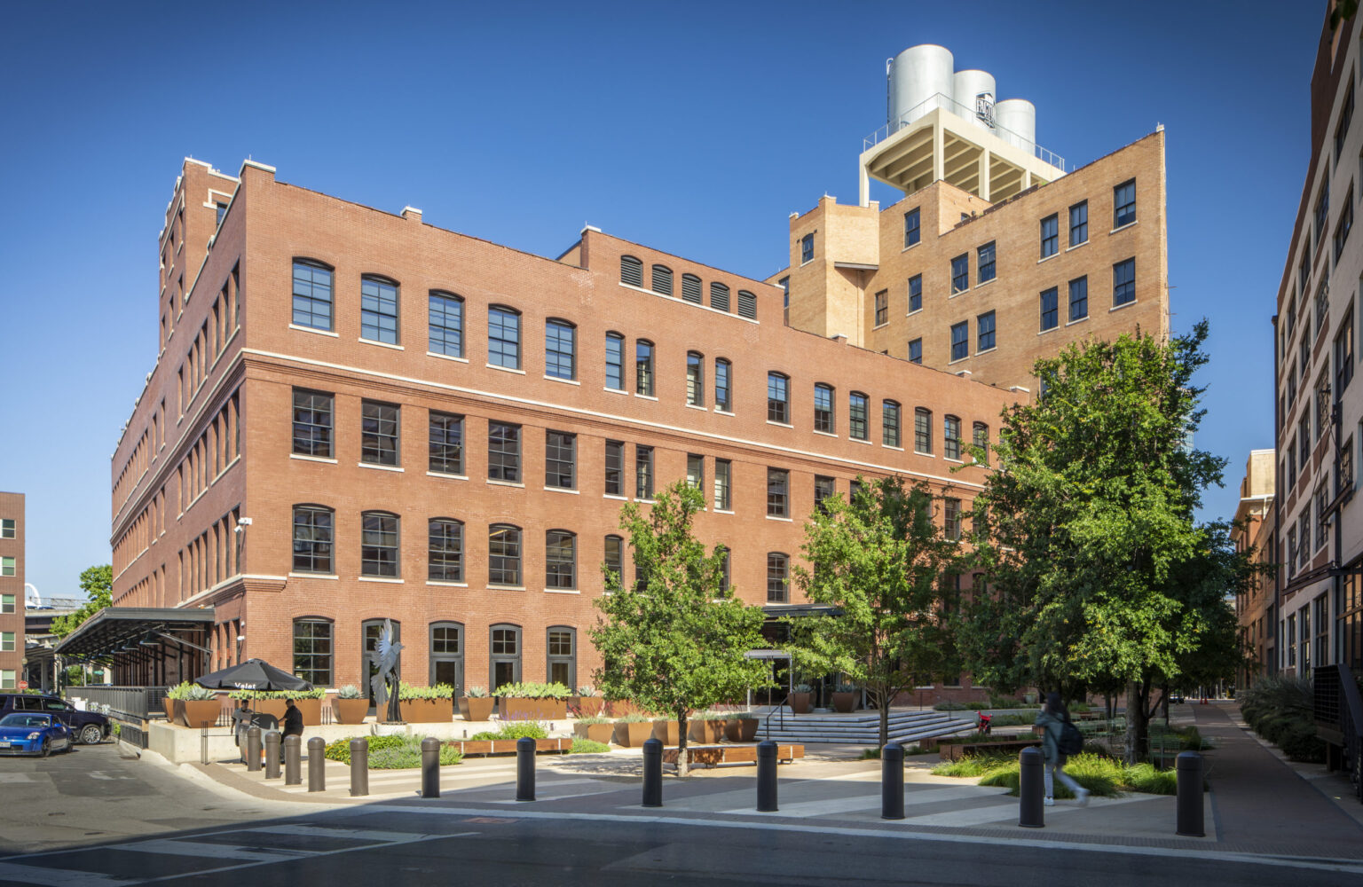 One of the most recognizable forms on the Dallas skyline, the three 20-foot-tall rooftop water tanks of 603 Munger have anchored the West End for over 100 years. Originally constructed in three phases from 1903 to 1922, the complex was built for the Brown Cracker and Candy Company, which was the largest cracker factory in the country at the time, employing 1,000 workers. Granite Properties recognized the potential of this landmark structure to attract new creative-class office tenants and restaurants and purchased the complex in late 2015.