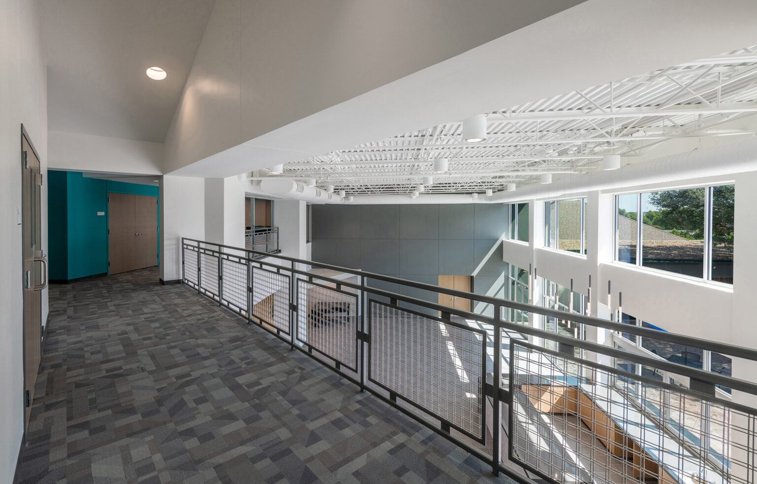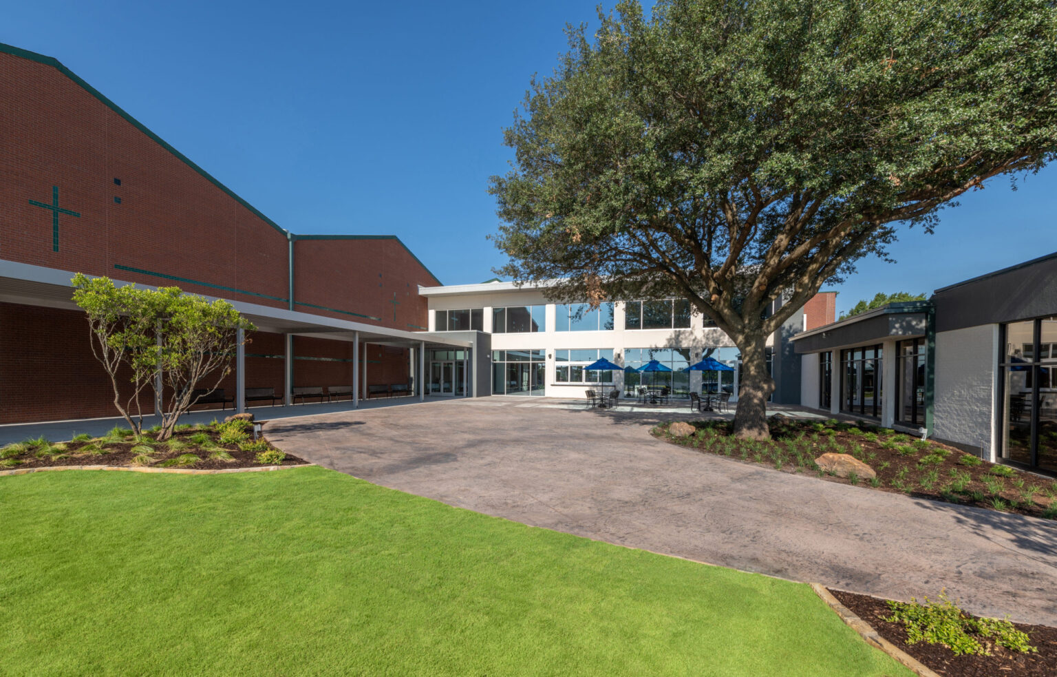 A two-story atrium, serving as the new “front door” of the church, connects the existing sanctuary to the new additions, providing a clear entry point from the main parking area and much-needed space for fellowship and connection. The atrium’s focal point is the church’s new Missions Café, which opens onto a large exterior patio and courtyard, enabling the church to engage with the Allen/Fairview community in dynamic new ways.