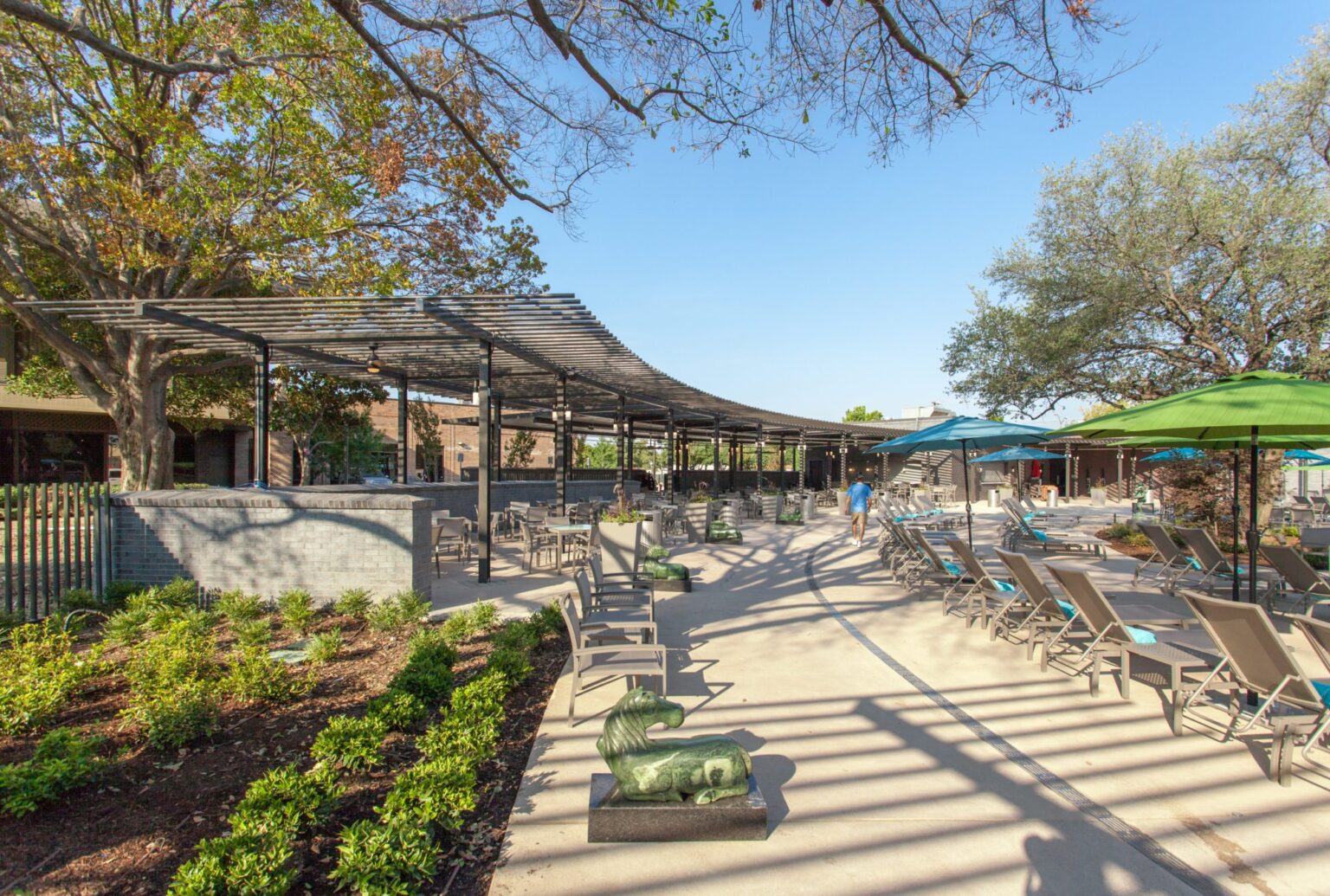 The Jade Waters Resort design draws from Eastern Asian concepts present in the hotel’s broad collection of Asian art. Envisioned as a landscape project first, the architecture serves as a minimal exercise in background building, offering a series of small pavilions as shelters from the Texas heat. By remaining minimal and delicate, the pools, landscape, and the 35 unique art pieces from the Crow Collection are more prominently celebrated.