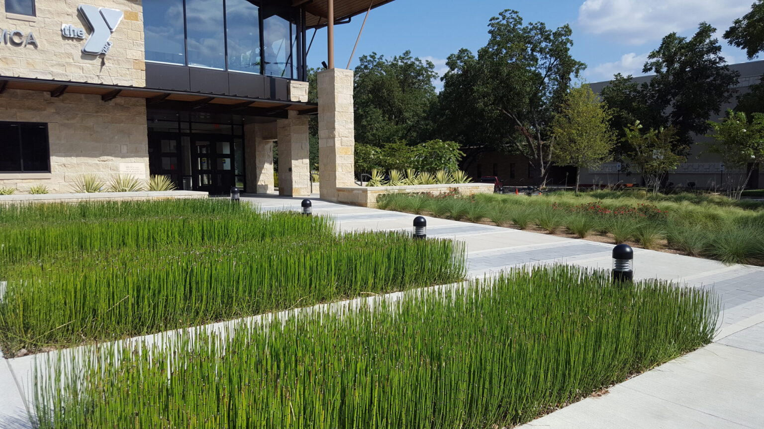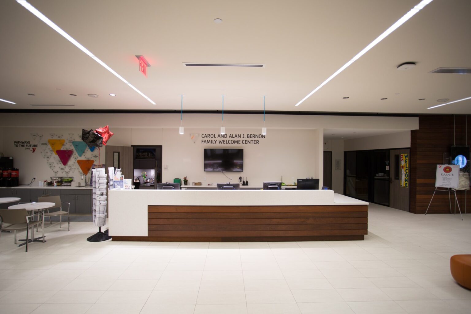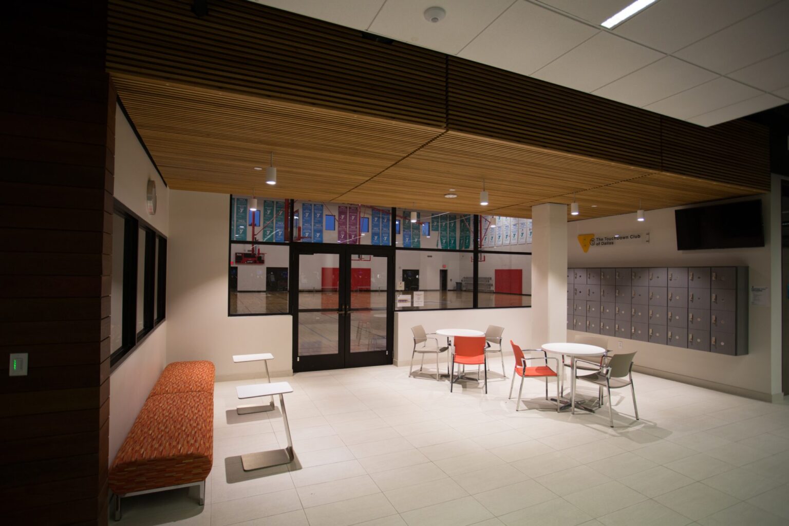 The updated facility offers the latest fitness amenities, including a full-size gym, cycling studio, and advanced workout equipment. A natatorium features two indoor pools, a therapy pool, and a lap pool. The facility also includes a wellness center, multipurpose space for youth programs, preschool classrooms, locker rooms, a lobby area, and outdoor recreation fields. Native and adaptive plants throughout the site provide a thriving setting for the facility, enhancing the overall community experience.