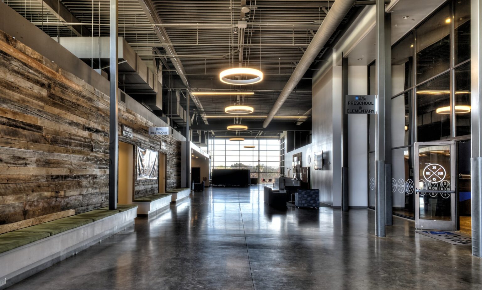 An outdoor covered porch with a fireplace, adjacent to a new play area, provides spaces for family gatherings and fellowship. Existing facilities were repurposed to enhance the children’s and student ministries, ensuring the entire campus supports the church’s mission of fostering community and spiritual growth.