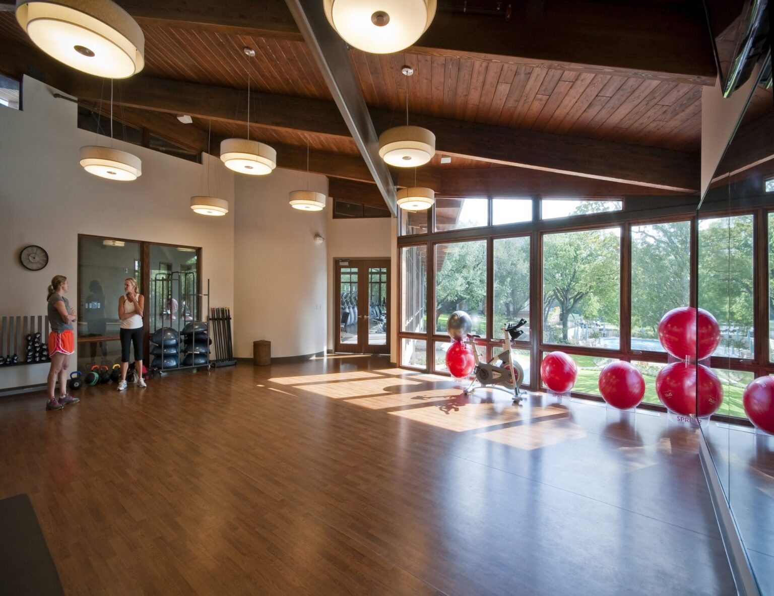 An angular fitness facility nestled into the mature landscape of a 50-year-old country club site