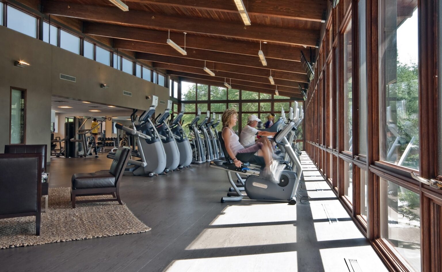 The design addresses the need for a functional and aesthetically pleasing fitness facility that integrates with the existing landscape and club amenities. The passive environmental design allows for natural ventilation of the fitness areas, shades glassy walls, uses thermal mass, and minimizes western fenestrations. The materials palette draws from a regional vernacular and is scaled to enhance the natural vegetation on the site. By accommodating the site’s topography and connecting various club features, the design creates a seamless and engaging experience for members and guests.