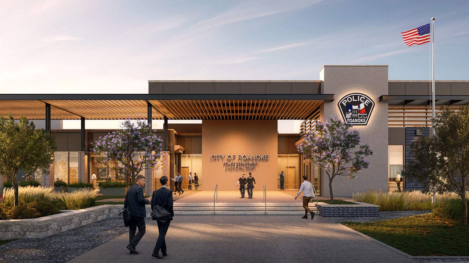 Nestled on 5.5 acres, this new construction project includes a state-of-the-art facility for the Roanoke Police Department and Municipal Court. The previous building posed many challenges and limitations due to its lack of growth potential. A study identified a new site off Fairway and Park Drive, deemed ideal for its ability to accommodate separate and distinct lobbies for Police and Court, dual vehicular paths, and expansion potential.