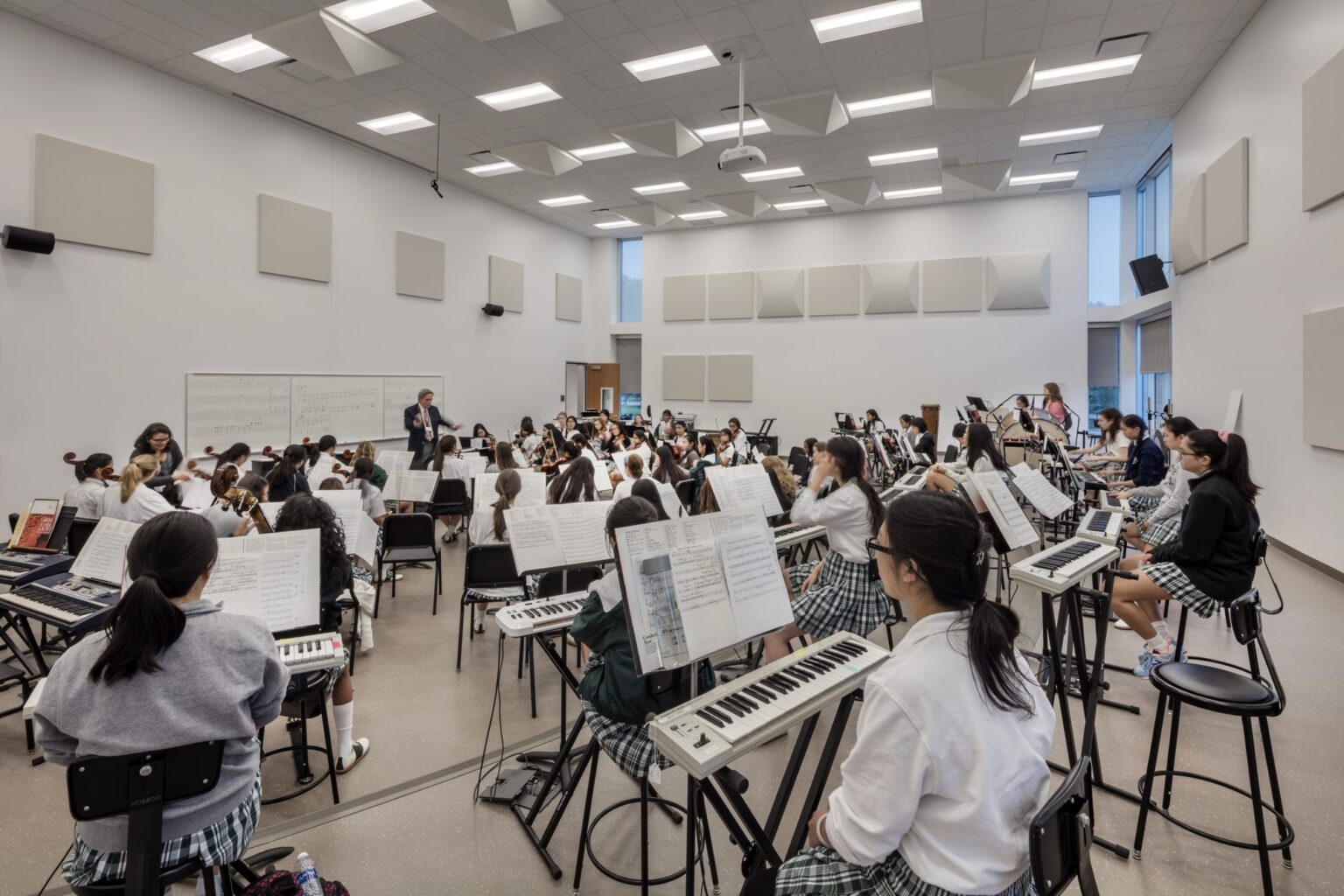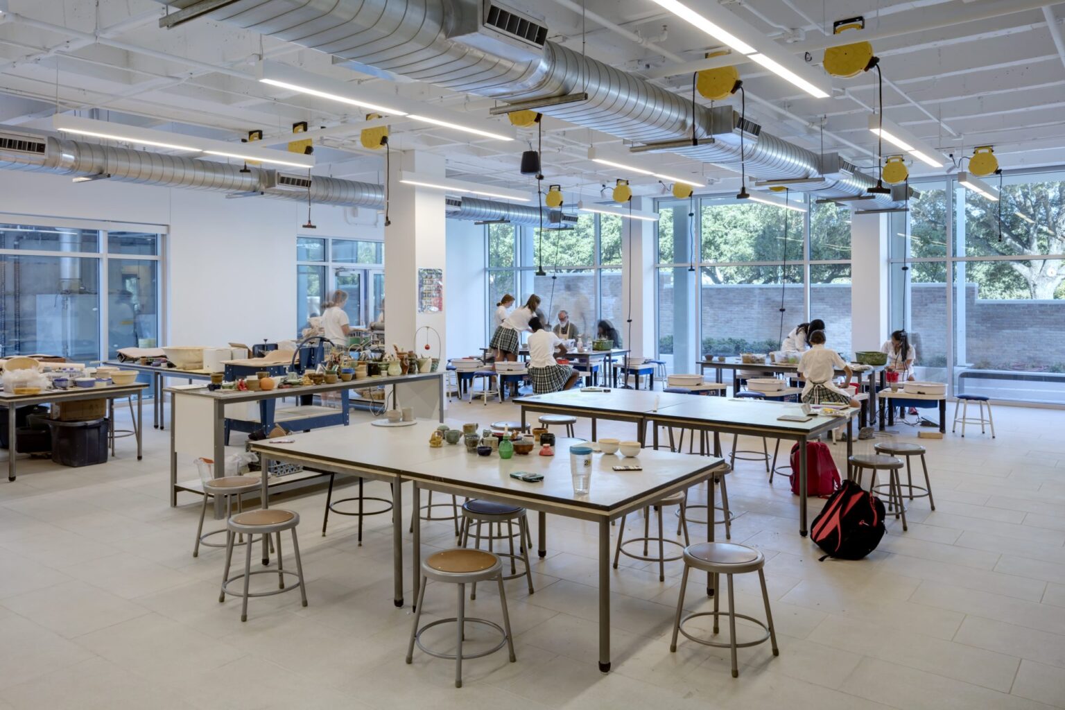 The design of the Center for the Arts addresses the importance of fostering creativity and artistic expression within the Hockaday community. The variety of specialized spaces, from rehearsal rooms to studios and performance venues, supports a comprehensive arts education. The inclusion of outdoor areas for art display and large sculpture workspaces encourages students to engage with their environment, blending artistic endeavors with natural surroundings. The facility’s layout, with its flexible gathering spaces and integration of multiple art forms, creates a dynamic environment that nurtures both individual talent and collaborative projects.