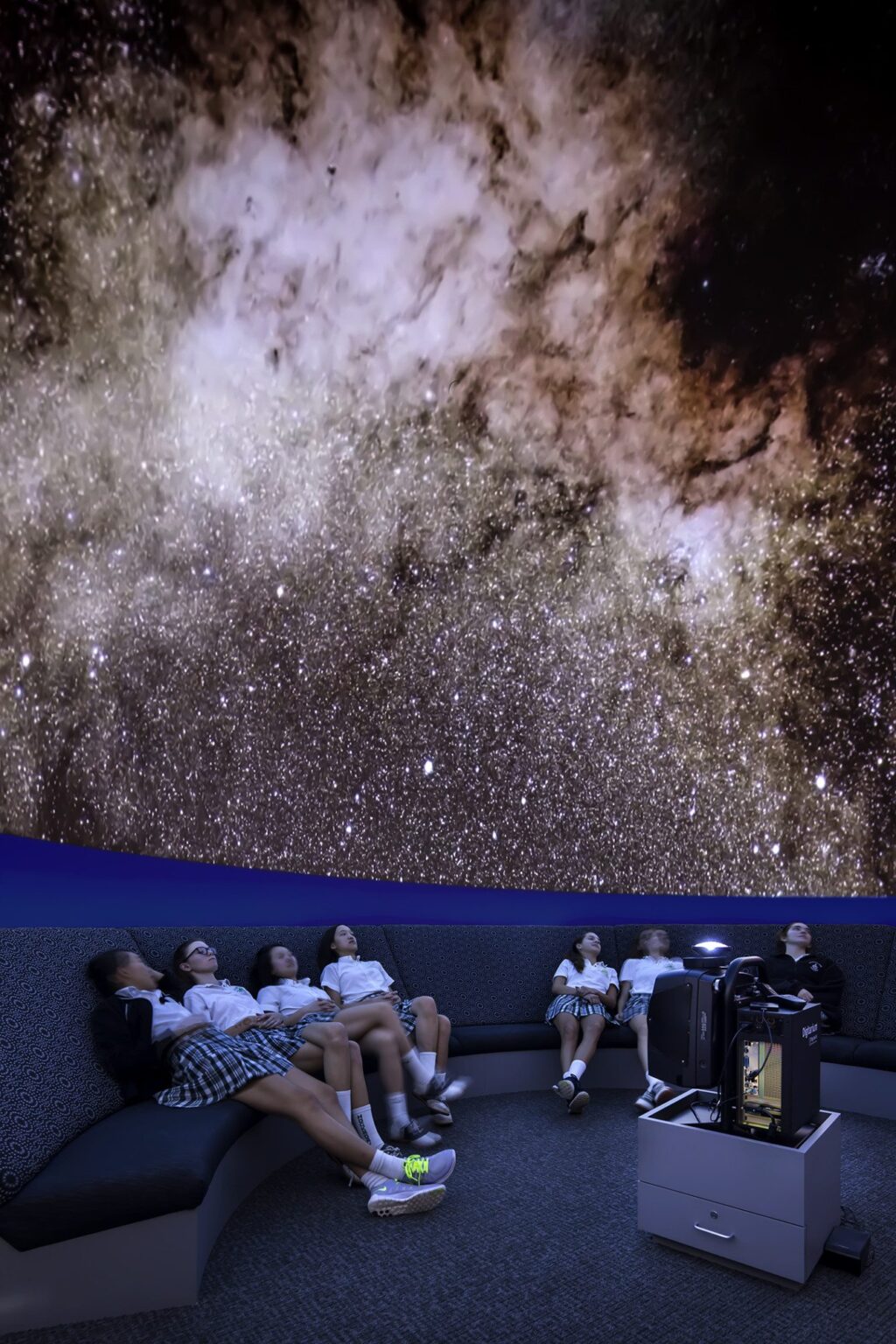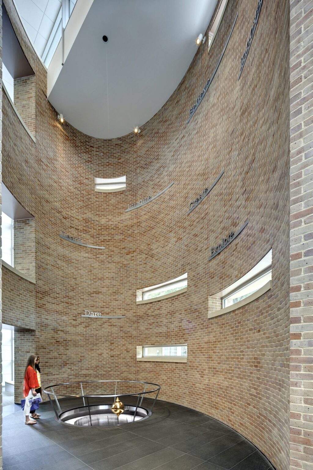 The renovation and expansion of The Hockaday School’s science building mark a significant enhancement to the school’s educational facilities. This project includes a complete overhaul of the existing two-story structure, the addition of a third floor dedicated to teaching spaces, and the creation of the Lyda Hill STEM (Science, Technology, Engineering & Math) Institute. Middle and upper school science labs are reorganized by discipline, with chemistry on the first floor, physics on the second, and biology on the third, which takes advantage of a new green roof teaching space. A three-story atrium with a Foucault pendulum provides visual and physical communication between floors, fostering interdisciplinary connections between science and the adjacent Fine Arts facility.