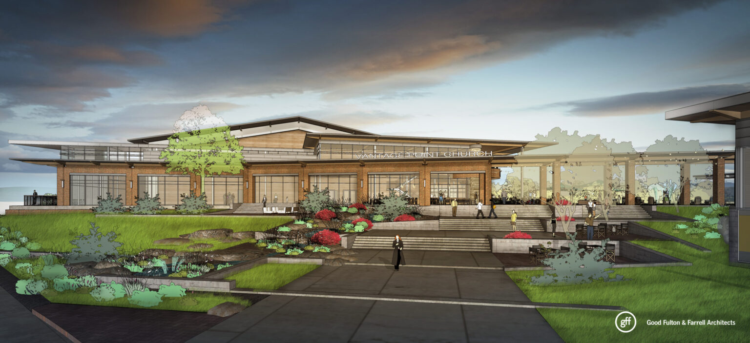 Vantage Point Church in Eastvale, California, collaborated with GFF to develop a comprehensive master plan and schematic building designs for a new campus on a 10.4-acre site at 8500 Archibald Avenue. Located adjacent to residential communities and the Santa Ana River, the property offers excellent access and visibility from Archibald Avenue, a major arterial gateway to the city.