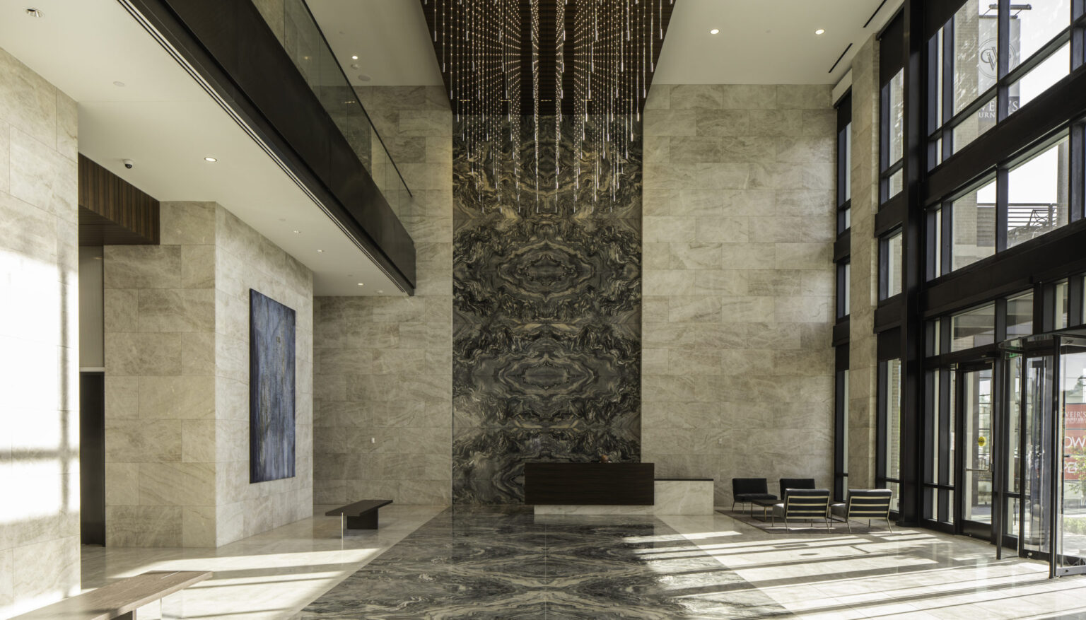 The street level of the building is intended to be clean and modern, with a hint of urban grit, while also enhancing the walkability of the existing pedestrian-scale neighborhood. The Class ‘A’ office tower is a series of shifted volumes that allow the building to present a slender profile, while the building skin is articulated with rich masonry and steel detailing.